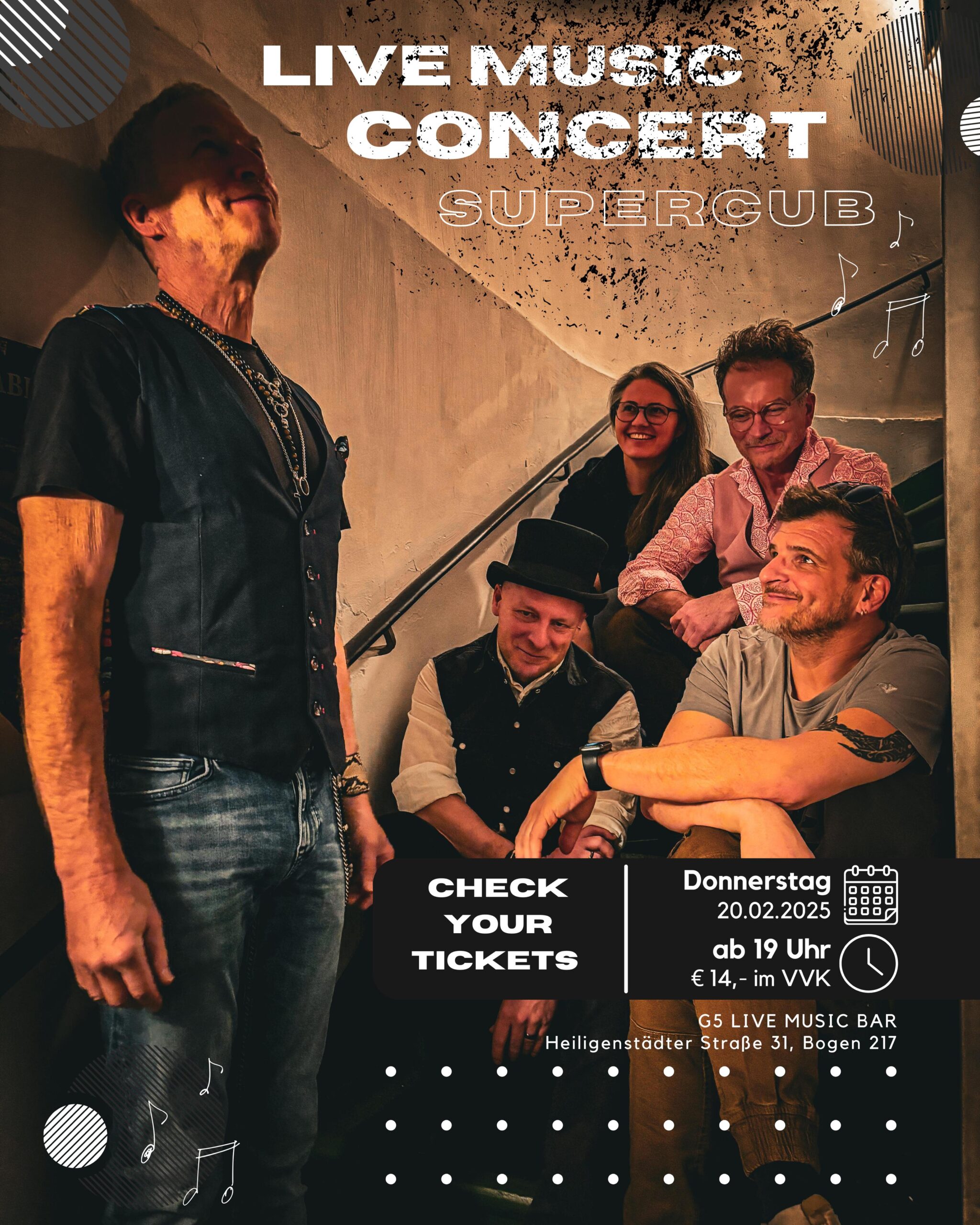 Seit 2017 sind wir, Supercub, „Slaves to the ‚blue soul of rock’“ und haben unseren eigenen Weg gefunden, die Götter des Blues und des Rock zu ehren. Unsere Musik ist eine kraftvolle Mischung aus unseren eigenen Songs und den unverkennbaren Klängen legendärer Künstler wie Jimi Hendrix, Eric Clapton und Billy Gibbons. Mit Interpretationen der Three Kings of Blues, Peter Green und Henry Fredericks Jr., besser bekannt als Taj Mahal, schaffen wir einen einzigartigen Sound, der tief in der Tradition verwurzelt ist und zugleich mutig in die Zukunft blickt. Wir vereinen das Beste aus Vergangenheit und Gegenwart und nehmen unser Publikum mit auf eine musikalische Reise, die von der Seele des Blues bis zu den Höhen des Rock reicht.